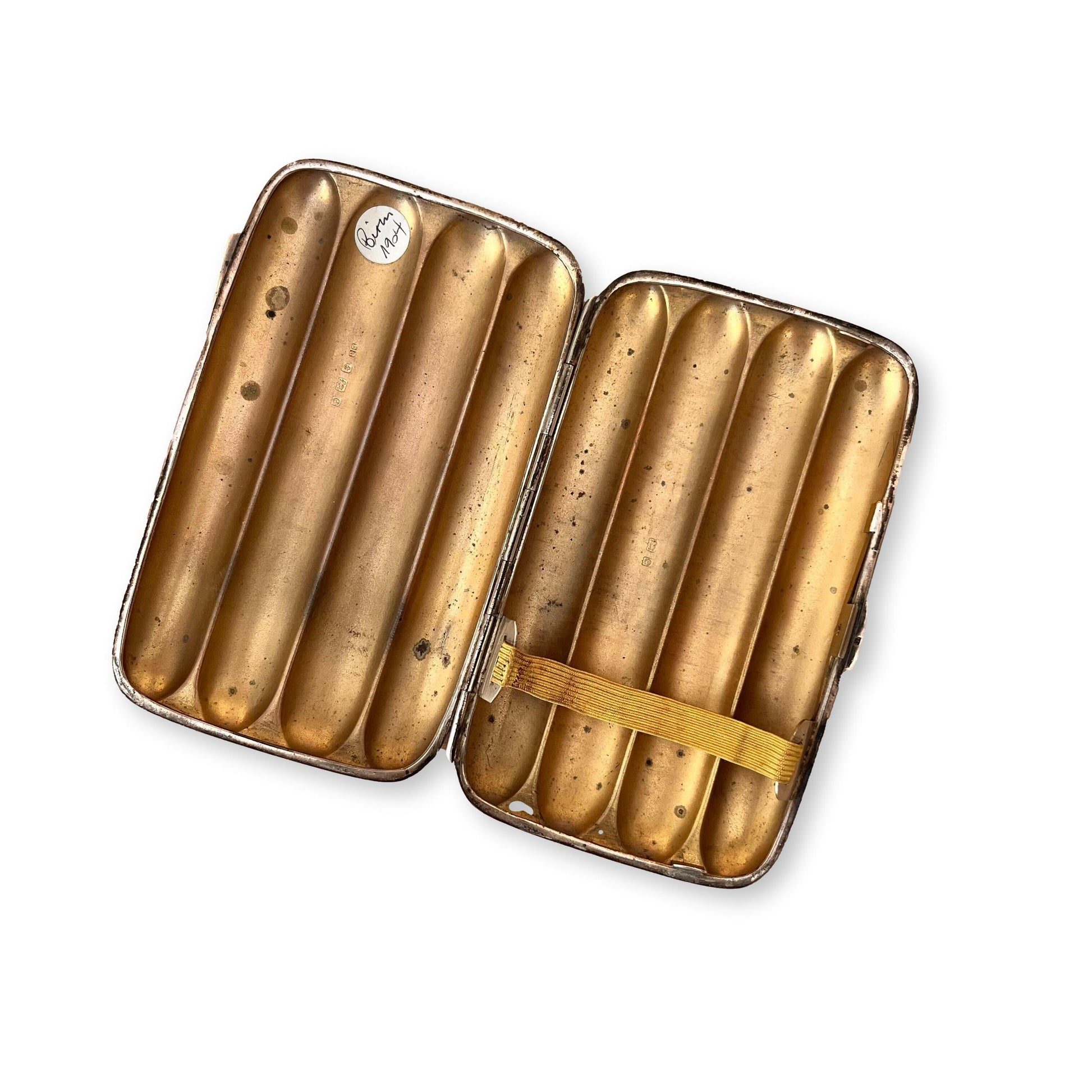 This is a beautifully decorated hand engraved cigar case with original interior elastic band. Perfect to put in your jacket pocket or displayed on a gentleman's desk.